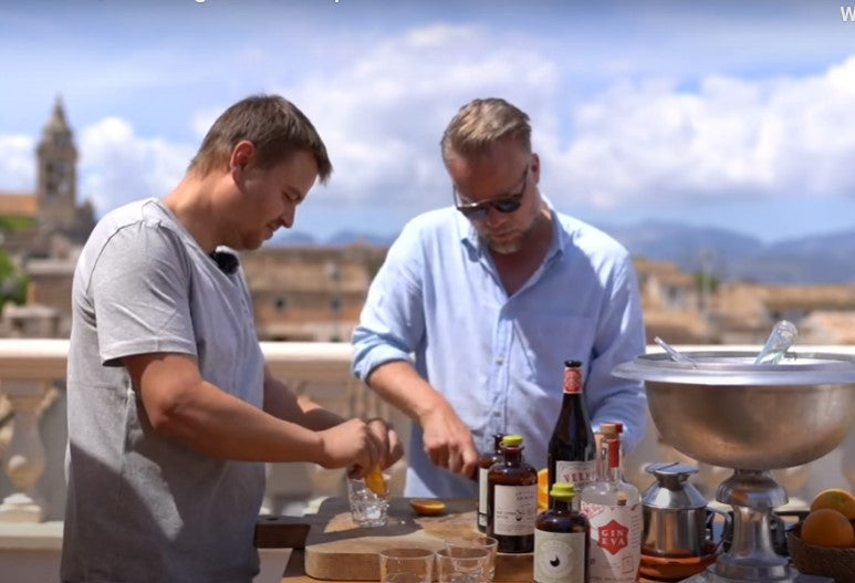 Unseren "NEGRONI MALLORQUI" den wir ganz spanisch in einem Porron mixen und ausschenken. Daher auch der etwas abgewandelten Name "PORRONI".